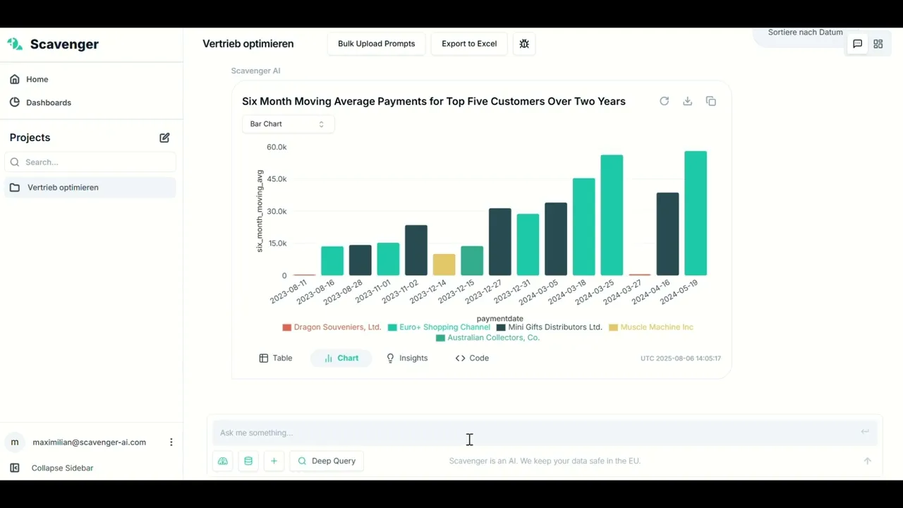 In under 3 minutes, we use Scavenger to segment our customers, conduct an ABC analysis, identify leads and cross-selling opportunities, and prepare for a sales call.