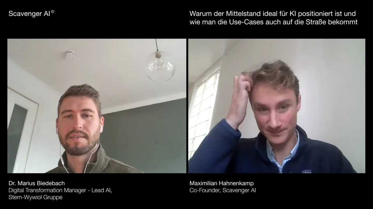 Ein Gespräch mit Dr. Marius Biederbach, Digital Transformation Manager & Lead AI, und Maximilian Hahnenkamp, Co-Founder von Scavenger AI